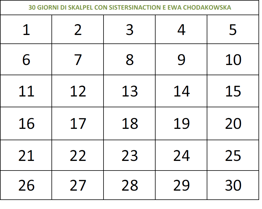 4. Dovete stamparvi un CALENDARIO di allenamento (oppure farlo a mano, potete usare la tabella qui sotto) e segnare quando vi siete allenate e cosa avete fatto.